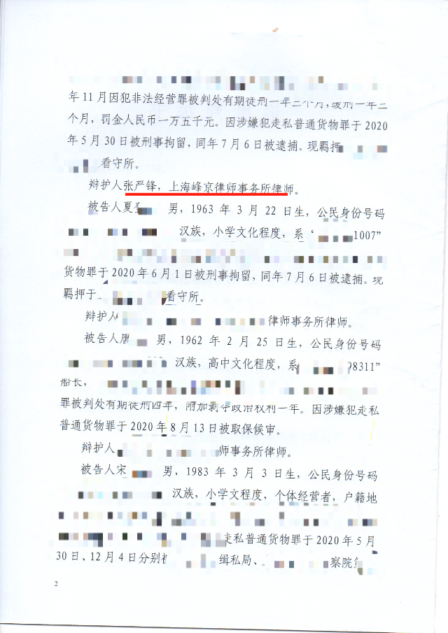 上海峰京律师事务所张严锋办理苑某走私香烟一案。2018年1月至2020年5月间,苑某为谋取非法利益,向国际轮船船员收购香烟,并在未向海关申报情况下偷运出海关监管区,经上海外高桥港区海关计核,苑某偷逃应缴税额达62万余元。